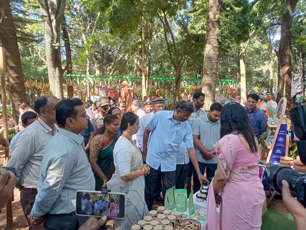 The Lok Kalp Foundation stall was honored by the visit of two esteemed dignitaries: Smt. Laxmi Hebbalkar, Honorable Minister of Women and Child Development, Disabled and Senior Citizens Empowerment, Government of Karnataka, and Shri Satish Jarkiholi, Honorable Minister of Public Works Department, Government of Karnataka.
