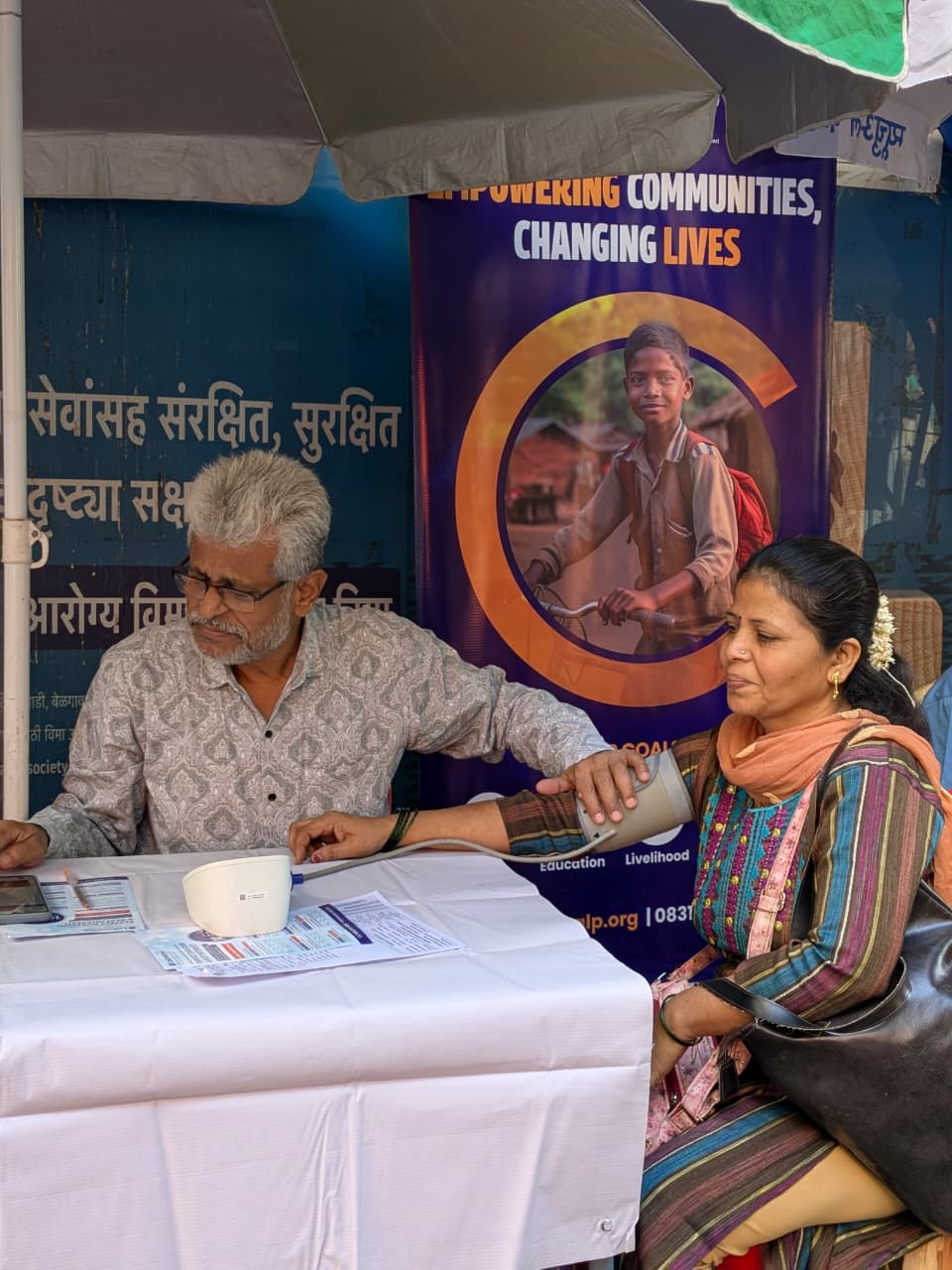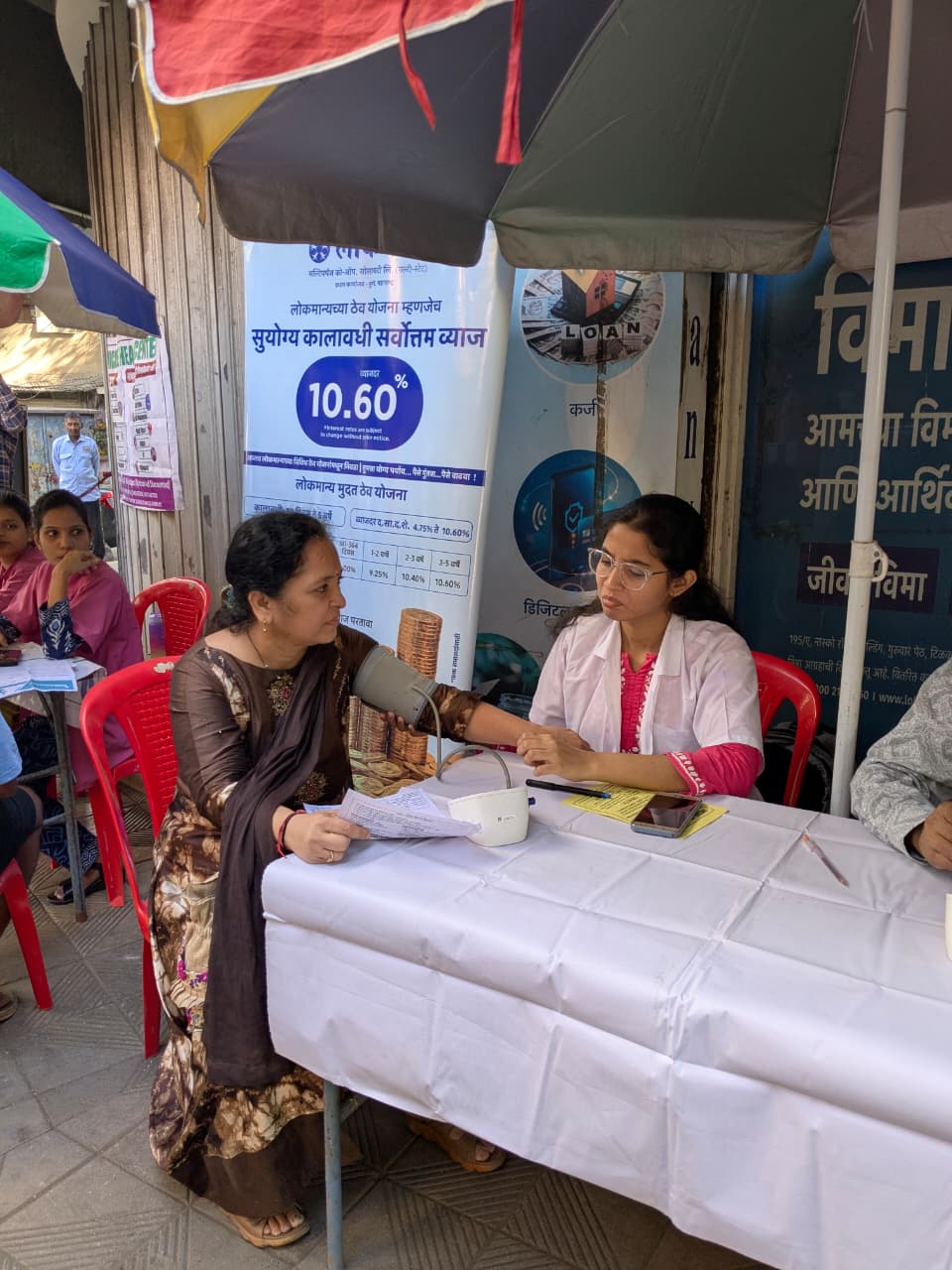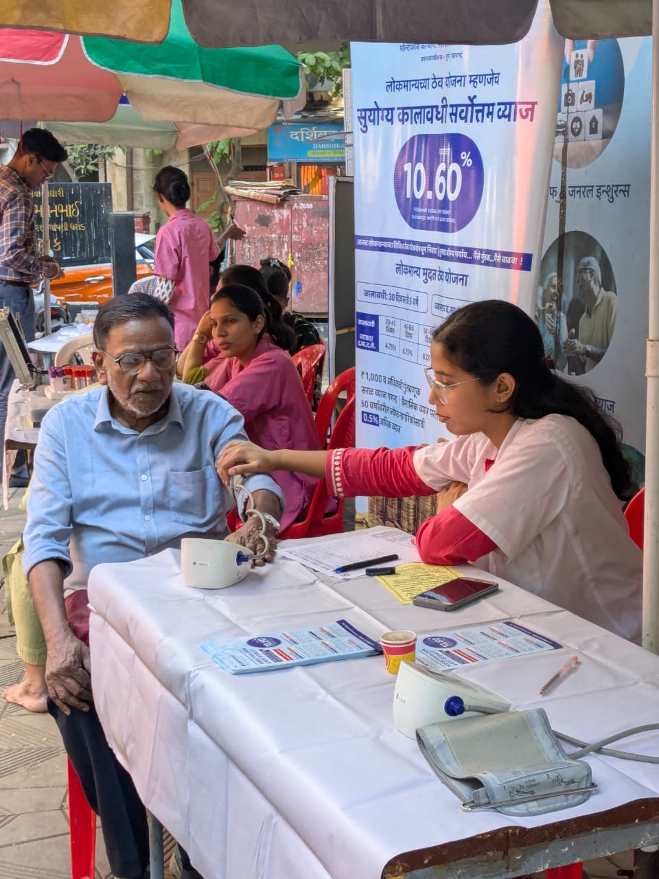 The camp included health screenings such as blood pressure, pulse diagnosis, BMI, body fat analysis, and diabetes testing. Free diet counselling and doctor consultations were provided after the check-up. An eye check-up was also conducted.
