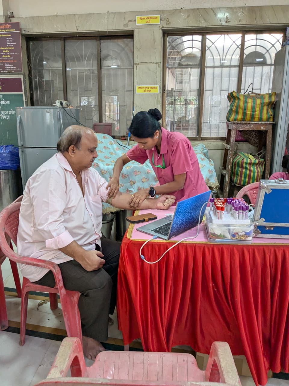 The camp included important health screenings such as blood pressure, pulse diagnosis, Body Mass Index (BMI), body fat analysis, and diabetes testing. After the check-up, participants were provided with free diet counselling and doctor consultations to help them better understand and manage their health conditions.