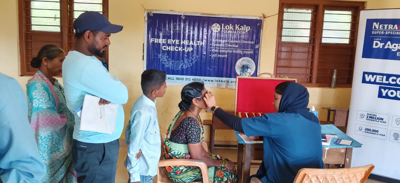 The camp was supported by the dedicated team from Netradarshan Hospital, including Mr. Udaykumar, Mr. Aditya Alagudekar, and Ms. Sabha Rajagolkar. From Lok Kalp Foundation, Santosh Kadam and Sandeep Patil were present and actively coordinated the program.