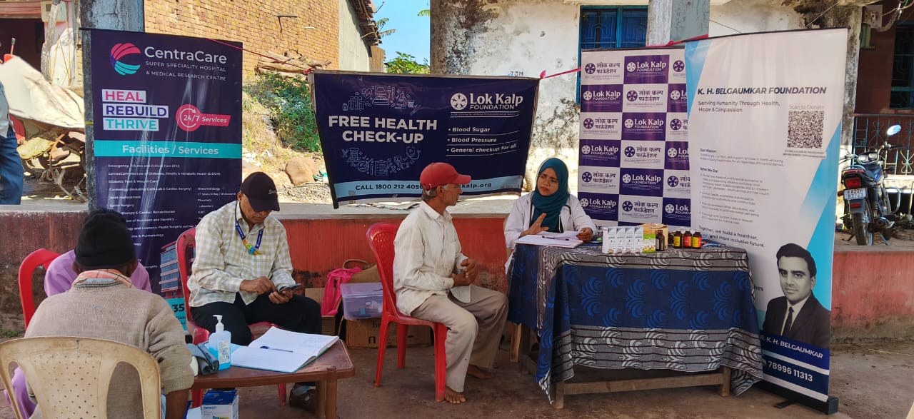 The camp was led by Dr. Sana Hudali, along with dedicated nursing staff Prajyoth Hiremath and Vinayak Tamankar from Centracare Hospital. Representing Lok Kalp Foundation, Santosh Kadam, Harshada Jagtap, and Sandeep Patil were present and ensured the smooth coordination of the camp.