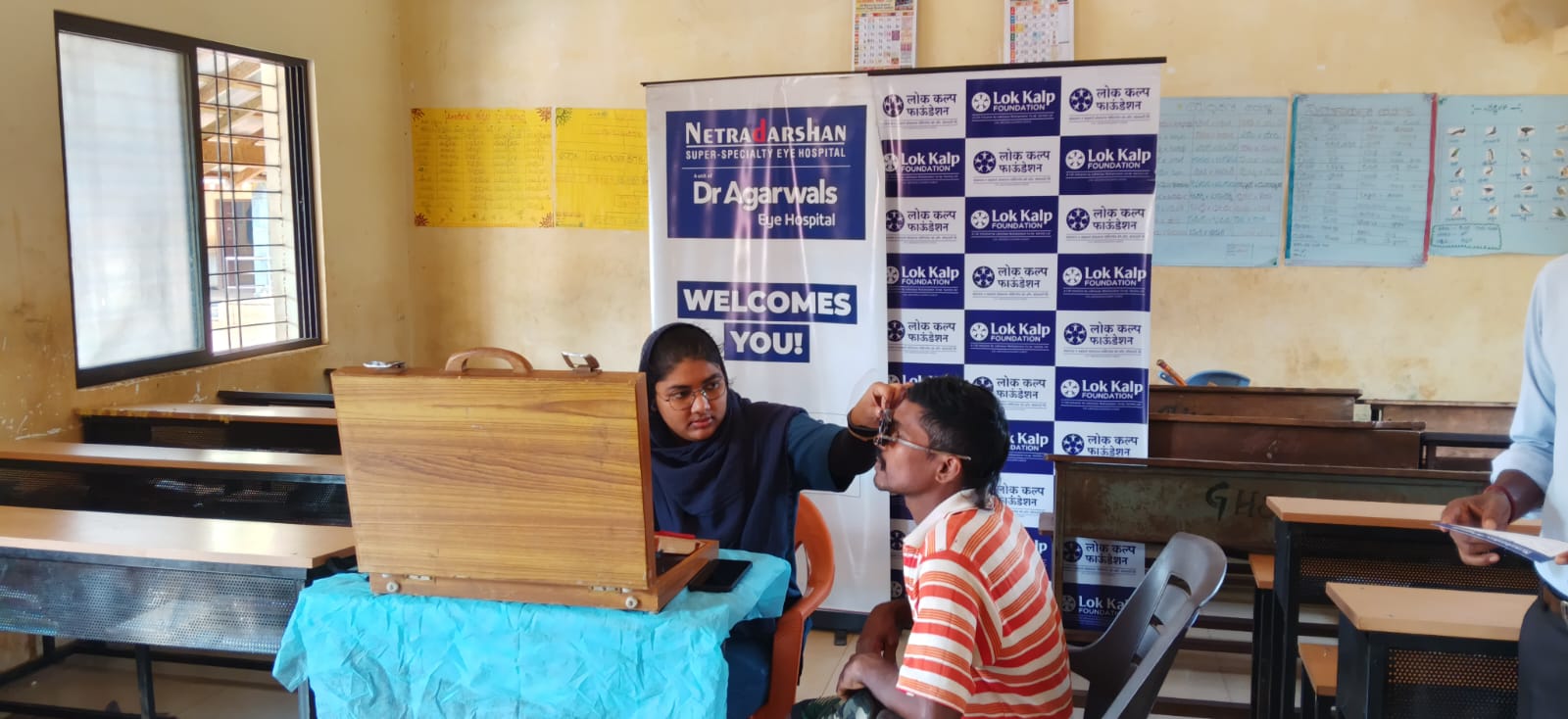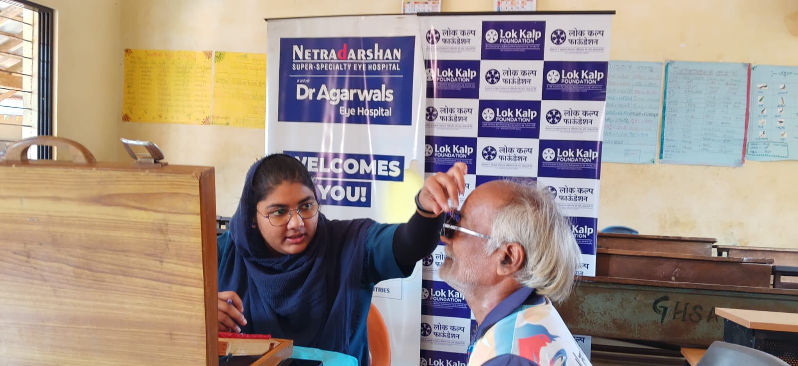The medical team from Netradarshan Eye Hospital, including Mr. Udaykumar (Assistant Manager), Mr. Aditya Alagudekar, and Ms. Sabha Rajagolkar, actively participated in the camp and offered their valuable services.