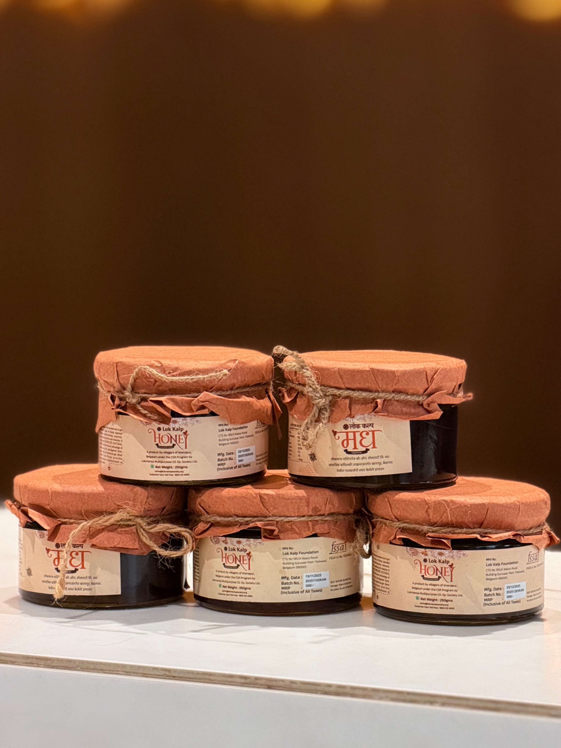 Experience the natural sweetness and rich aroma of Lok Kalp Wildflower Honey.