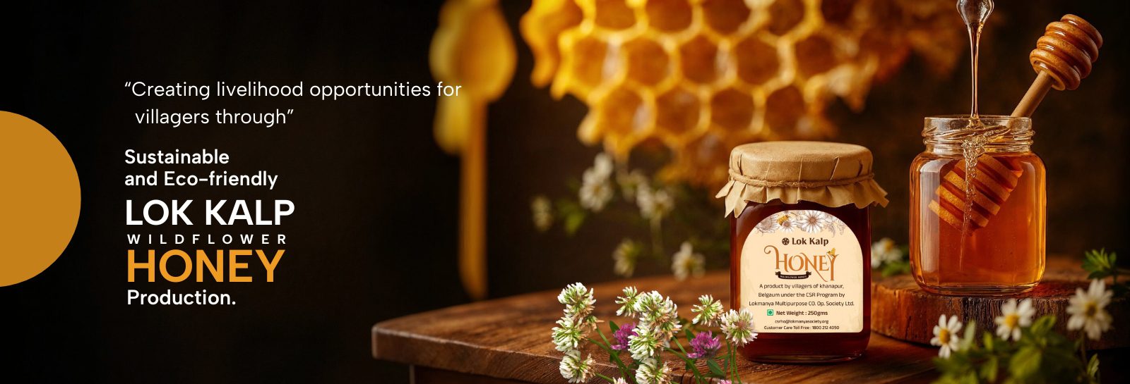 Experience the natural sweetness and rich aroma of Lok Kalp Wildflower Honey.